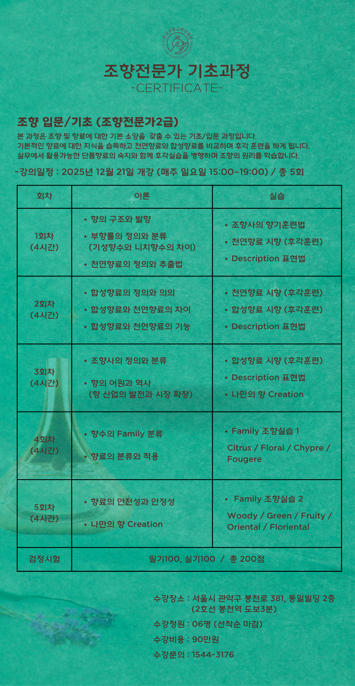 조향전문가 자격과정 조향지도사 자격과정 창업 과정 맞춤형화장품 심리조향사 원데이클래스